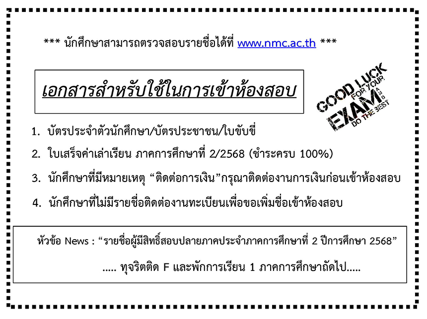 หัวข้อ : ประกาศรายชื่อผู้มีสิทธิ์สอบปลายภาคประจำภาคการศึกษาที่ 2 ปีการศึกษา 2568