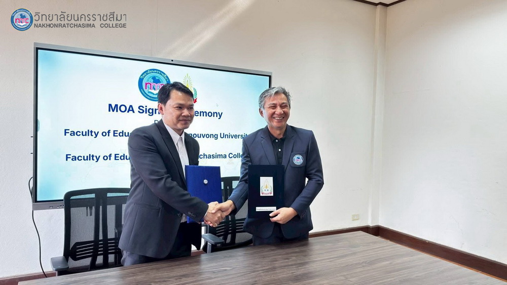 : พิธีลงนามบันทึกความเข้าใจ (MOA) ด้านความร่วมมือทางวิชาการ ระหว่าง คณะศึกษาศาสตร์ วิทยาลัยนครราชสีมา และ มหาวิทยาลัยสุภานุวงศ์ สาธารณรัฐประชาธิปไตยประชาชนลาว (Lao PDR) เพื่อสร้างเครือข่ายความร่วมมือที่เข้มแข็งและพัฒนาวิชาการในระดับสากล