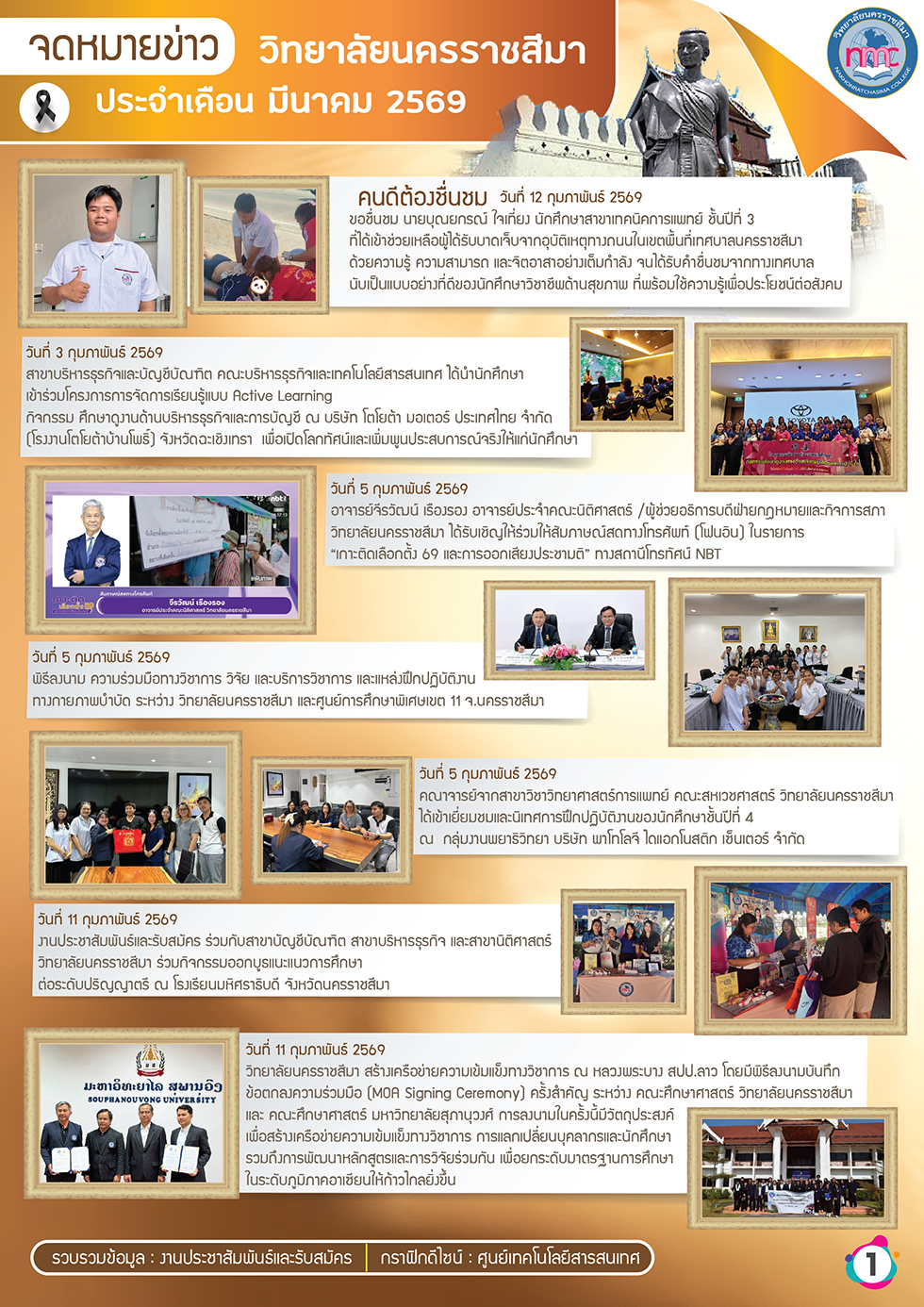 วันที่ 3 กุมภาพันธ์ 2569 คณะบริหารธุรกิจและเทคโนโลยีสารสนเทศ วิทยาลัยนครราชสีมาได้นำนักศึกษาสาขาบริหารธุรก