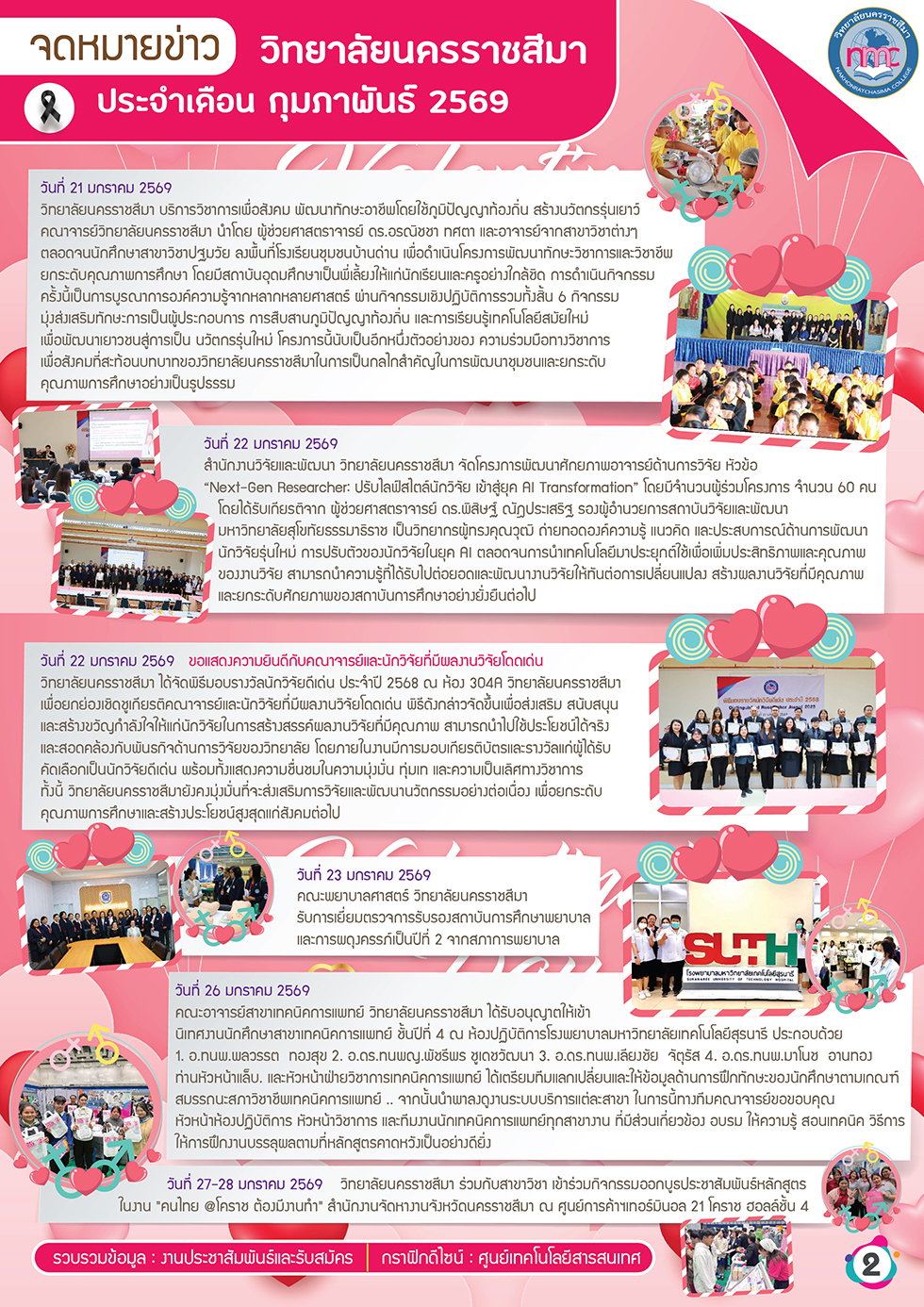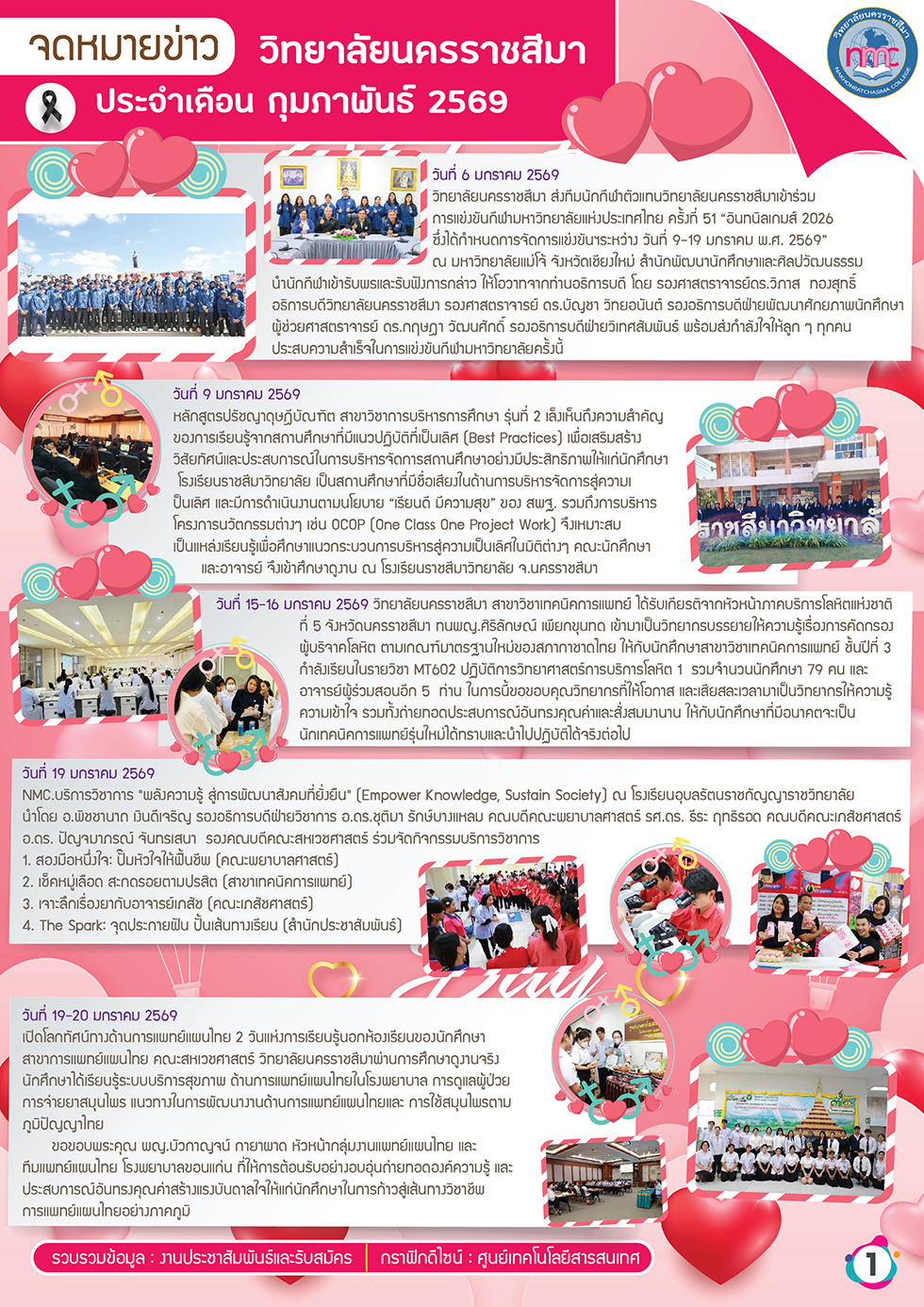 วันที่ 17 กุมภาพันธ์ 2569 คณะพยาบาลศาสตร์ วิทยาลัยนครราชสีมา นำโดย อาจารย์ ดร.ชุติมา รักษ์บางแหลม คณบดีคณะพยาบา