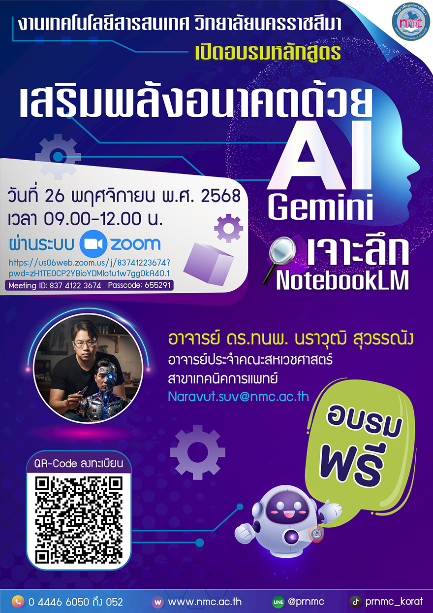 : อบรมหลักสูตร เสริมพลังอนาคตด้วย AI Gemini เจาะลึก NotebookLM โดย อาจารย์ ดร.ทนพ.นราวุฒิ สุวรรณัง